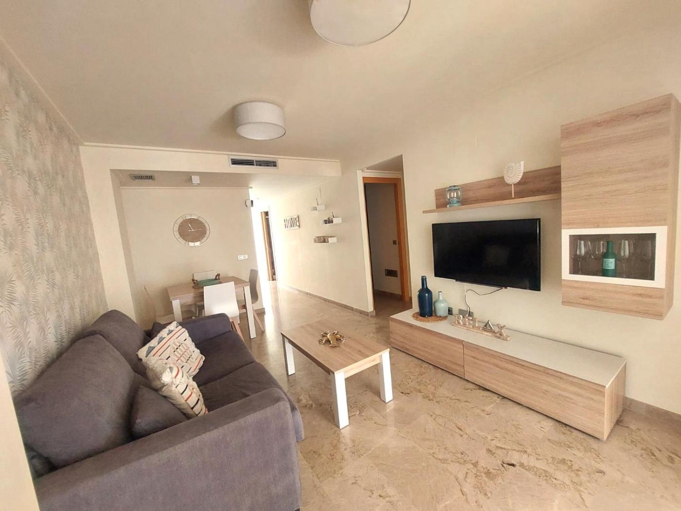 Apartamento de 2 dormitorios. This spacious apartment comprises 1 living room, 2 separate bedrooms and 2 bathrooms with a bath and a shower. Meals can be prepared in the kitchen, which comes with a stovetop, a refrigerator, a dishwasher and kitchenware. The air-conditioned apartment provides a flat-screen TV, a washing machine, a coffee machine, a seating area as well as sea views. The unit offers 4 beds.