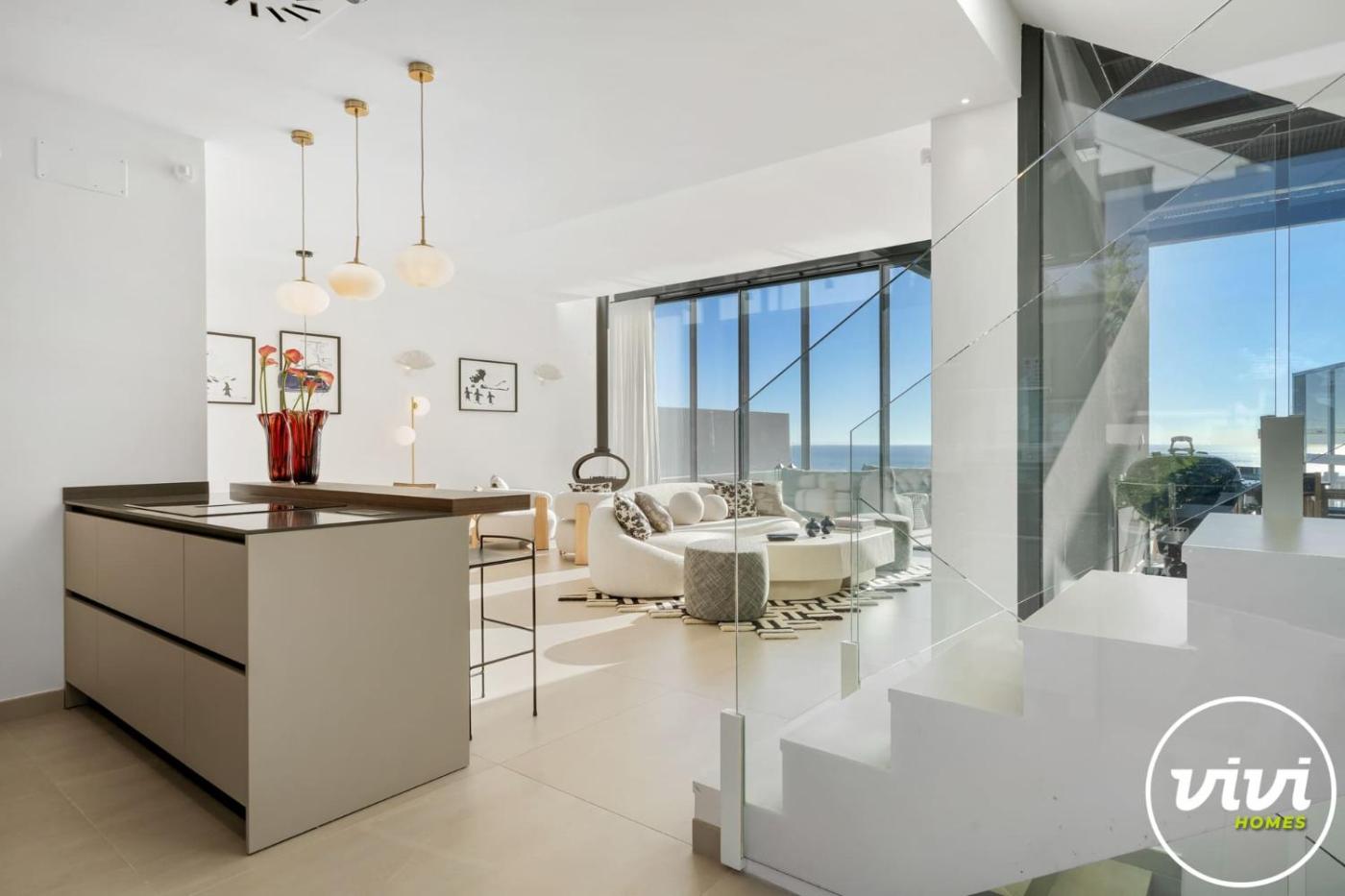La villa tiene 4 dormitorios, 5 baños, ropa de cama, toallas, TV, cocina totalmente equipada y terraza con vistas al mar.