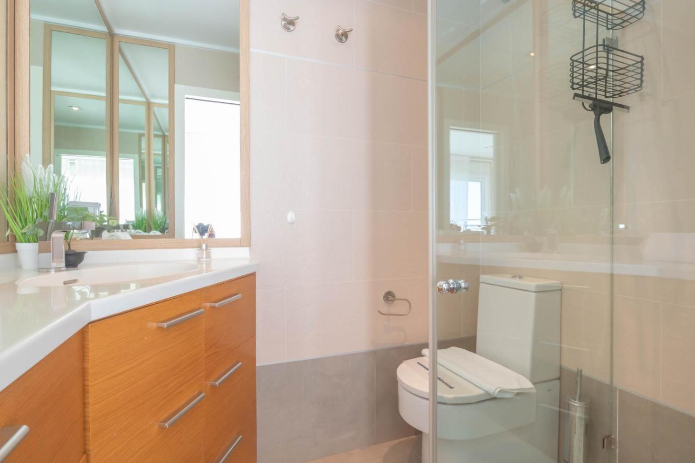 Apartamento con terraza. This spacious apartment includes 1 living room, 3 separate bedrooms and 2 bathrooms with a shower. In the fully equipped kitchen, guests will find a stovetop, a refrigerator, a dishwasher and kitchenware. The air-conditioned apartment offers a flat-screen TV, a washing machine, a seating area, a dining area as well as sea views. The unit has 4 beds.