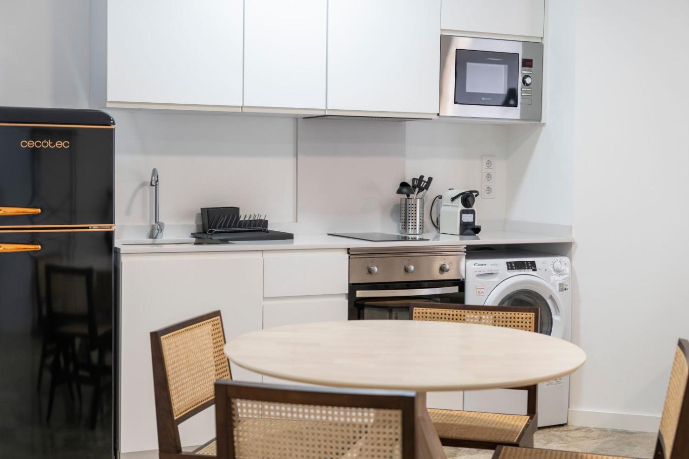 Estudio Estándar. The studio offers a sofa, a high chair for children, as well as a private bathroom featuring a shower and a hairdryer. In the fully equipped kitchen, guests will find a stovetop, a refrigerator, kitchenware and a microwave. This studio is air-conditioned and features a seating area with a flat-screen TV, a washing machine, a private entrance, a tea and coffee maker, as well as a dining area. The unit offers 1 bed. ;